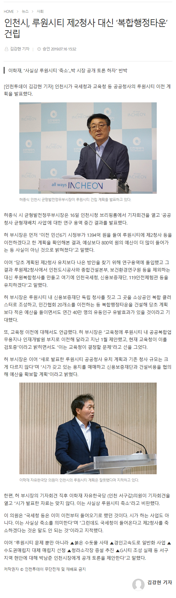ÀÎõ½Ã, ·ç¿ø½ÃƼ Á¦2û»ç ´ë½Å ¡®º¹ÇÕÇàÁ¤Å¸¿î¡¯ °Ç¸³