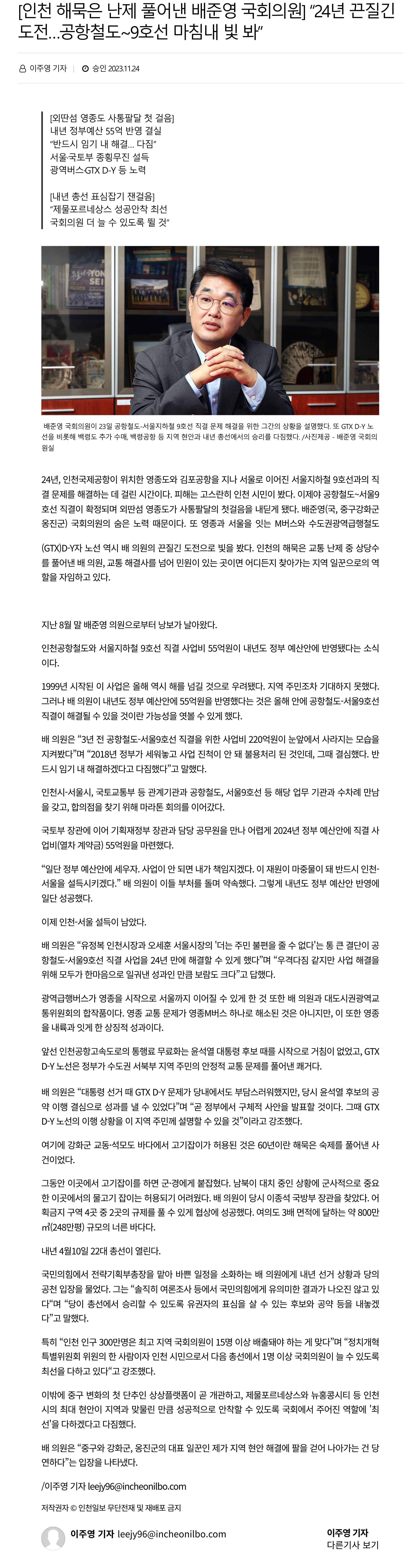 [ÀÎõ ÇØ¹¬Àº ³Á¦ Ç®¾î³½ ¹èÁØ¿µ ±¹È¸ÀÇ¿ø] ¡°24³â ²öÁú±ä µµÀü¡¦°øÇ×öµµ~9È£¼± ¸¶Ä§³» ºû ºÁ¡±